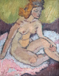 Los 64, Karen Schacht, Akt auf rosa Tuch, Öl auf Leinen, 42×33 cm, 1938, WVZ-Nr. 163